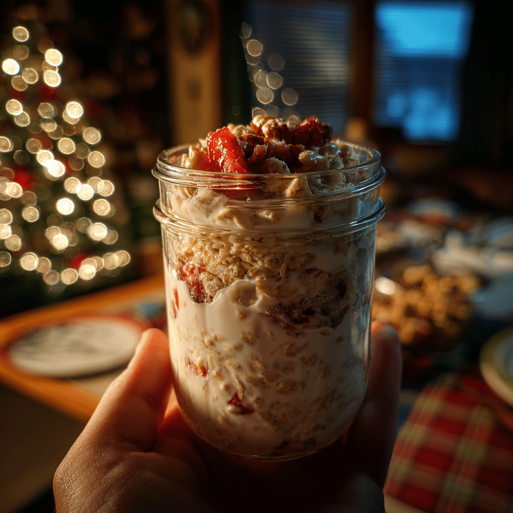 A festive Christmas-themed overnight oats recipe inspired by holiday flavors—combining creamy oats with warming spices, cranberry, orange, and a touch of sweetness. Designed as a base representing the style found in ’12 Best Christmas Overnight Oats Recipes.’