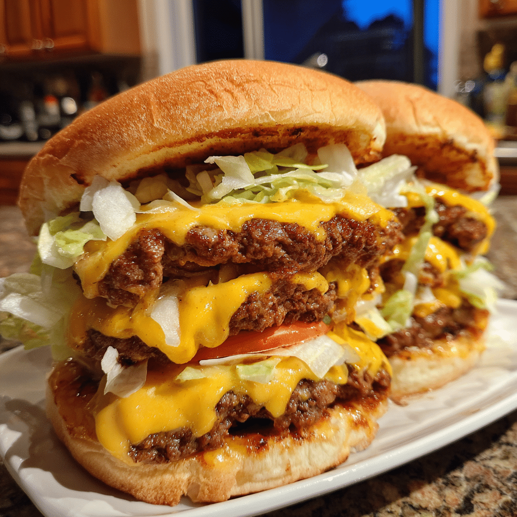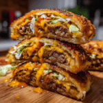 Golden, baked cheeseburger bombs inspired by the classic Big Mac, stuffed with seasoned beef and melty cheese, then brushed with butter and served with signature sauce.