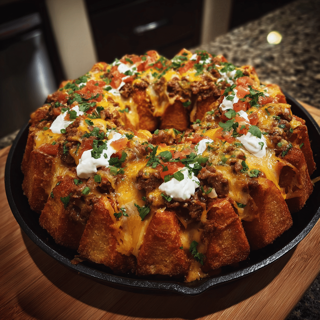 This recipe is easy to assemble, visually impressive, and perfect for sharing. The layered approach ensures even distribution of toppings, while baking in a Bundt pan keeps everything warm and melty. It is ideal for entertaining and completely customizable.