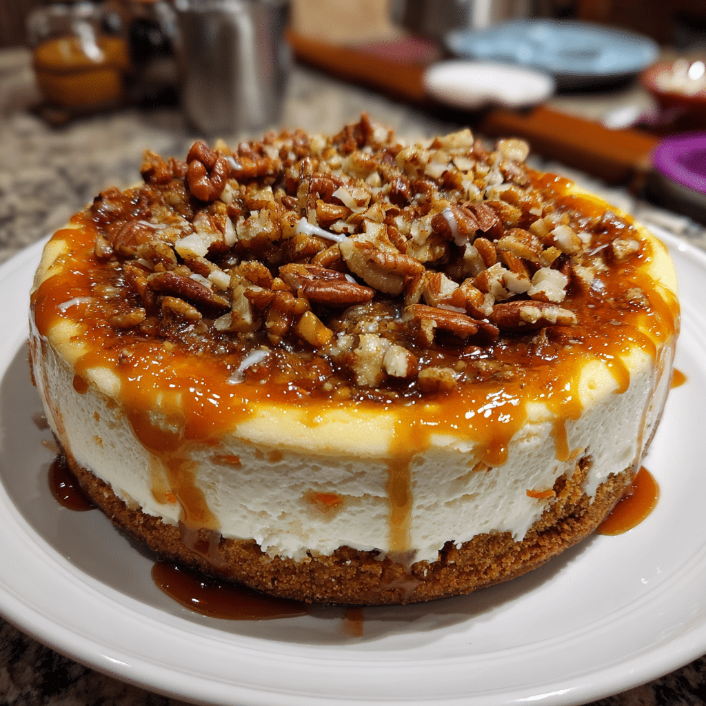 A decadent dessert combining moist spiced carrot cake with a creamy vanilla cheesecake layer—rich, beautiful, and perfect for holidays or special occasions.