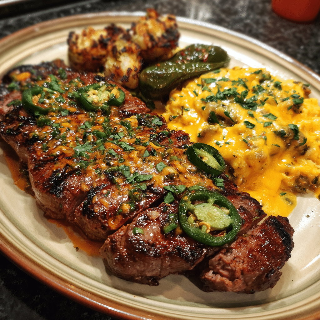 Cheesy Jalapeño Steak Plate – Bold, Creamy, and Packed with Heat