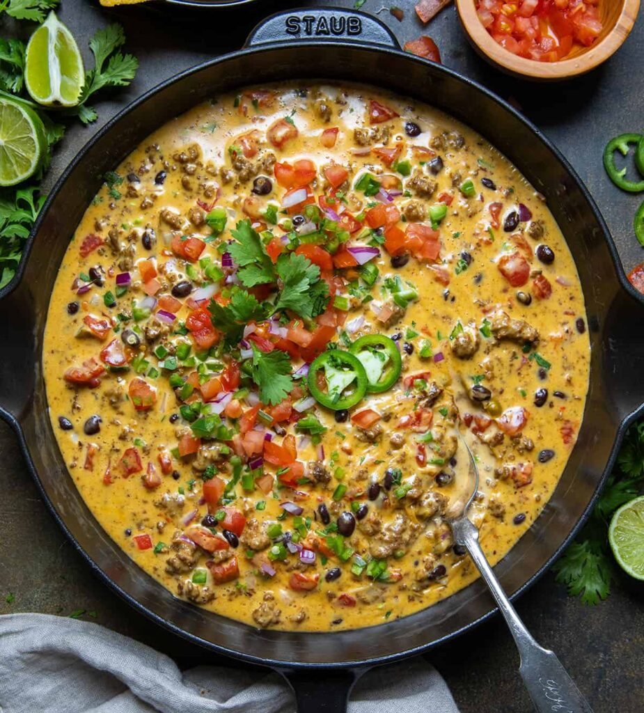 - Vegetarian Version: Skip the meat and add black beans, corn, or sautéed mushrooms for a hearty vegetarian dip.