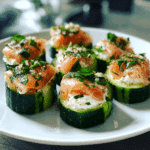 Cucumber Smoked Salmon Bites are a fresh, elegant, and effortless appetizer that combines crisp cucumber, silky smoked salmon, and creamy, herb-infused topping in a single beautiful bite. Perfect for entertaining or light snacking, this recipe delivers sophistication without stress and shines in any season. With endless customization options and minimal prep, these bites make a stunning addition to your appetizer lineup—light, refreshing, and undeniably delicious.