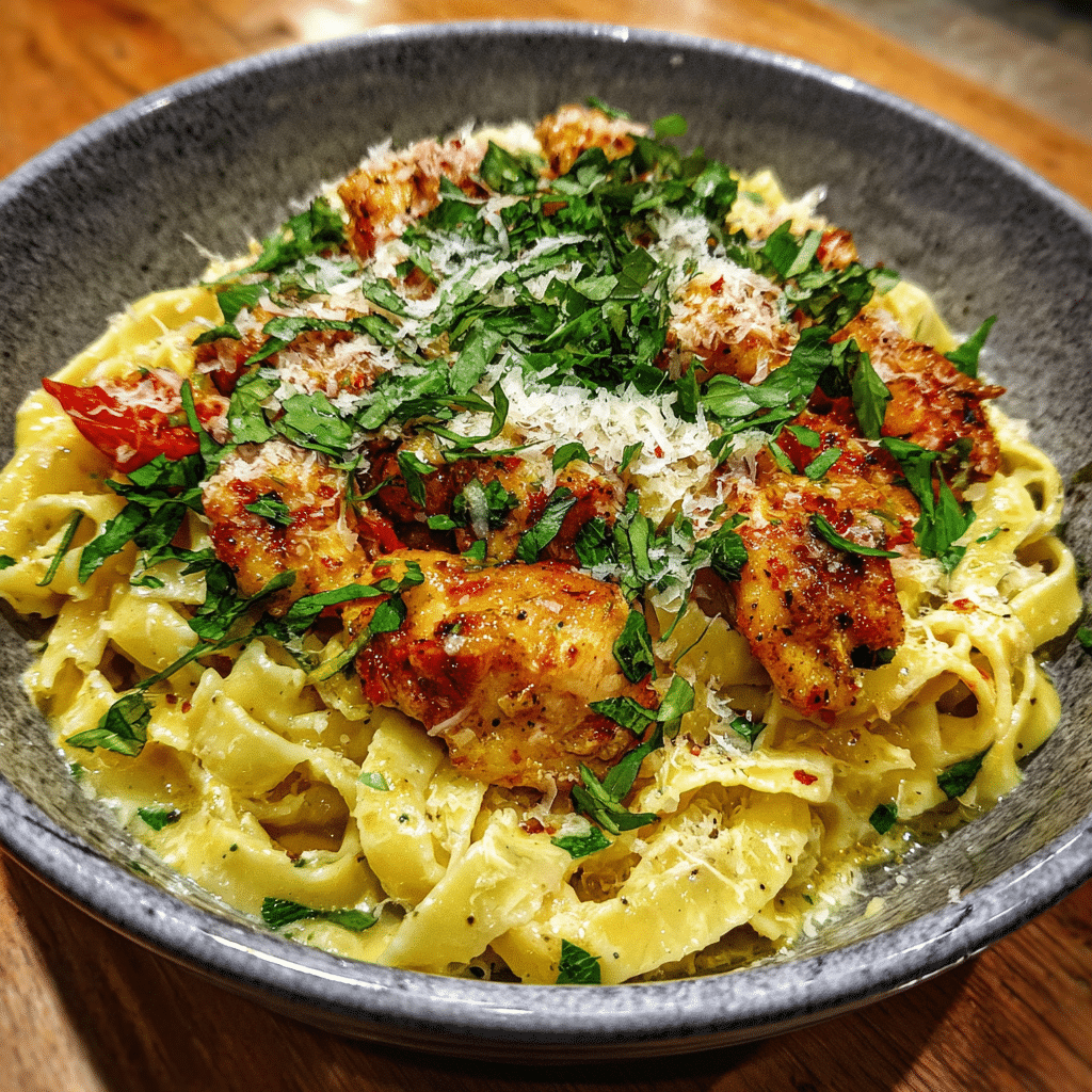 When you crave a cozy, flavorful meal that comes together quickly, this Easy Parmesan Chicken Pasta is the perfect answer. Juicy, golden chicken pieces tossed in a creamy Parmesan sauce with tender pasta — it’s pure comfort in a bowl. The combination of garlic, butter, and Parmesan creates a silky, restaurant-worthy sauce that clings beautifully to every bite. I once made this using penne instead of fettuccine, and it worked wonderfully — the sauce coated every piece of pasta perfectly. This recipe is ideal for busy weeknights but elegant enough for a dinner with guests. Best of all, it uses simple ingredients you probably already have in your kitchen.