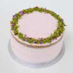11. Spread whipped cream over cake and top with crushed pistachios and rose petals.