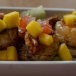 - Spoon mango lime salsa over the shrimp.