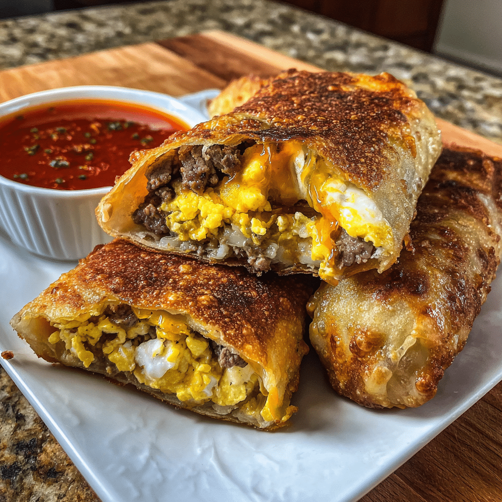 These egg rolls are rich and satisfying, providing protein from beef and creaminess from cheese. They are best enjoyed as an indulgent treat or party appetizer.