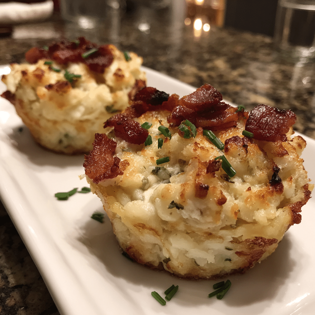 Crispy baked mashed potato nests filled with a savory stuffing, perfect as an appetizer or side dish with a golden exterior and creamy interior.